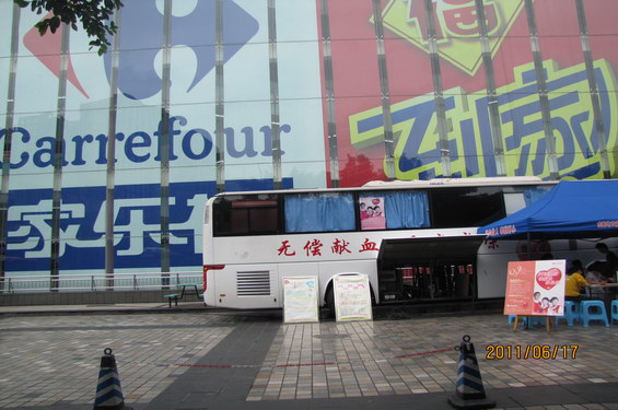 2011年6月14日是第8个世界无偿献血日,为积极响应今年无偿献血日主题“捐献更多血液,挽救更多生命”,鼓励更多的市民成为自愿无偿献血者,成都家乐福公司于6月17日组织开展了无偿献血献爱心活动。