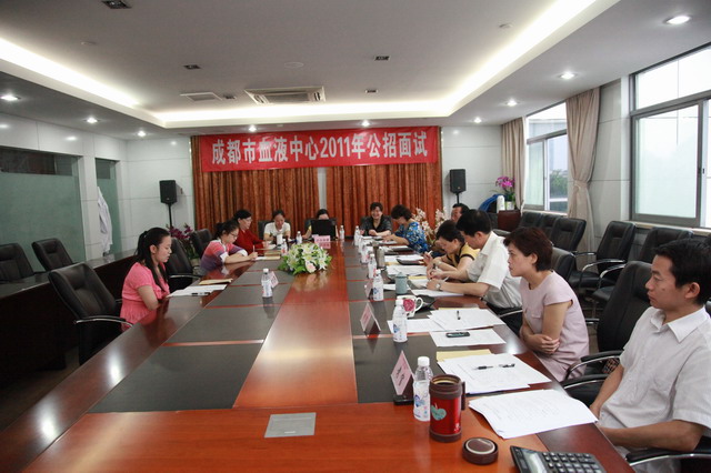 根据成都市人社局的安排部署,按照市卫生局的要求,7月12日中心在六楼小会议室组织开展了“成都市血液中心2011年事业单位公开招聘工作人员面试”考试工作。今年中心拟招聘采供血医生2名,采供血护理、血液检测及会计各1名,经过人社局统一笔试,共有15人进入中心面试。