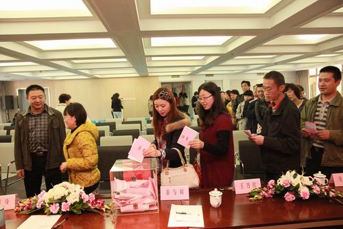 随后,工会委员张洁同志宣读了《成都市血液中心第四届工会委员会委员选举办法》,并介绍了新一届工会委员和经审委员会委员候选人基本情况,公布了选举监票人和计票人名单,大会经过举手表决,一致通过了以上的事项。随后会员同志投出了自己神圣的一票,经无记名差额选举,产生了由唐莉、吴丽华、肖静、张兴鸣、宋玲、邓敏、李莹7名同志组成的第四届成都市血液中心工会委员会和由胡翠萍、王玲、雷晓岚3位同志组成的工会经审委员会。