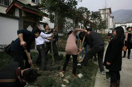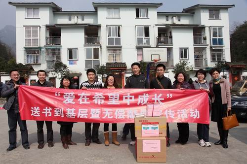 中心为都江堰市向峨乡红火社区植树及捐赠书籍