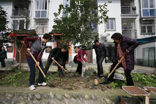春色盎然,天气由寒转暖。杨群身书记带头拿起铁锹,与中心党员干部、职工们一起投入到植树活动中。大家你一锹我一铲,你刨土我浇水,在红火社区每家每户的院门前栽下了棵棵桂花树,只待来年成长出一片绿荫,散发一阵幽香,让这片历经“5.12”大地震,在废墟上重建起来的新家园焕发新的生机。本次植树活动,总共种植桂花树30余棵,在帮助红火社区建设的同时,也让中心党员干部和职工们收获了互助友爱的精神。