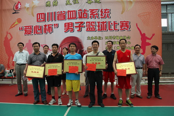 为加强全省采供血系统文化建设,增进血站之间、血站与无偿献血者之间的交流和友谊,丰富员工业余文化生活和增强单位内部凝聚力,2012年7月5日,由四川省输血协会、成都市血液中心、各市(州)中心血站联合主办的以“团结、友谊、奋进”为主题的四川省采供血系统“爱心杯”男子篮球比赛拉开了序幕。