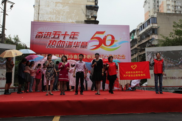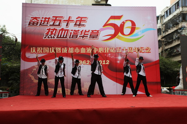 最后,庆祝活动的重头戏--以支部所辖科室为片区的文艺表演开始了,首先业务一支部的歌伴舞《爱在天地间》在欢快的音乐声中热烈登场,她们载歌载舞,表达了业务一线职工的美好祝福;随后离退休支部的舞蹈《最美的歌儿唱给妈妈听》上场,她们穿着鲜艳的少数民族服装表达了老一辈血站人的情怀。其他支部的节目同样精彩,行政支部的诗朗诵《风雨砥砺五十载、步履坚实再出发》,他们声情并茂、抑扬顿挫的朗诵反映了中心发展的艰辛和职工们对未来发展的憧憬和信心;彭州采血队以一曲《明天会更好》表达了自己的心愿,业务三支部表演的反映“5.12”地震时采血屋前感人的场景,医务人员连续奋战,热心市民踊跃献血,令人回味、难忘;年轻人的劲歌劲舞展现了新一代职工的风采和活力。最后业务二支部的大合唱《红色使命》把庆祝活动推向高潮,台下职工也齐声高唱,大家共同表达血液中心职工的心声和对未来前景的美好祝愿!庆祝活动圆满结束。