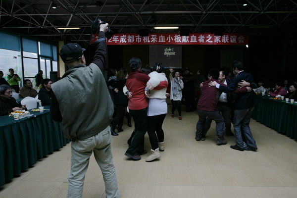 2012年11月18号的龙泉山庄会议室热闹非凡!来自成都及周边地区的188名机采血小板志愿者们和中心工作人员相聚在这里。中心领导王乃红主任代表中心所有医护人员向志愿者们一直以来对偿献血事业的支持表达了谢意;机采室主任田浩老师就机采的工作情况和大家亲切交流;志愿者代表李林发表了深刻的献血感言;随着缓缓响起的音乐,参会的受助者代表许尚、文春蓉及患白血病的儿子余博文给志愿者们深深致谢!整个会场爱心涌动!