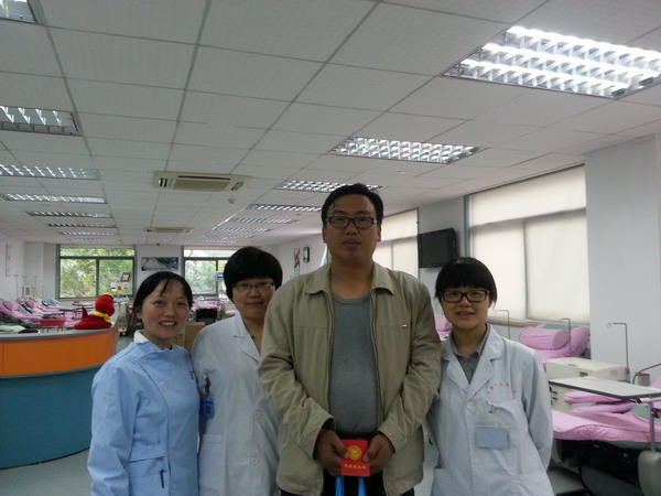 4月25日上午,中心办公室接到一名来至河南名叫郭承希的Rh(-)B献血者的电话,他从电视上得知一名Rh(-)B型血地震伤员李军在正四川省人民医院接受治疗,希望能够为李军献血。办公室工作人员得知他要专程从河南赶过来进行献血,十分感动,但同时也向他解释说,目前中心此血型的血液完全能够保证伤员救治的需要,但这位热心的献血者仍然执意要过来,说已买好了机票。下午4点半左右,中心业务科接到郭承希的电话,说已抵达成都,由于从机场到血液中心还需一段时间,估计5点过才能到达中心。业务科立即通知机采室延长下班等待献血者。