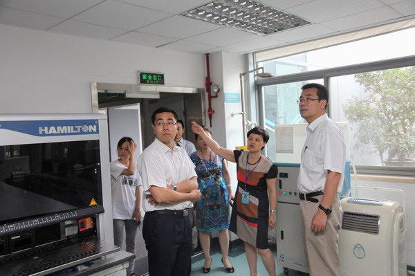 随后,在中心领导陪同下,高处长一行来到中心核酸检测实验室、血液筛查实验室、成分制备室、机采室、储血供血室等科室视察、指导工作,听取中心领导的介绍,向正在工作的业务人员表示问候。最后,在中心业务大楼前,高处长一行与中心领导合影留念。