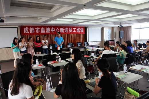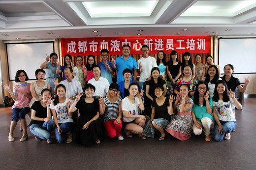 2013年8月8日―9日,成都市血液中心组织了对2013年新进21名员工的岗前培训工作。本次新进员工包括2名博士,5名硕士和14名本科学士,将补充到采血护士岗、采血医生岗、血液检测岗、血液制备岗和行政管理岗。