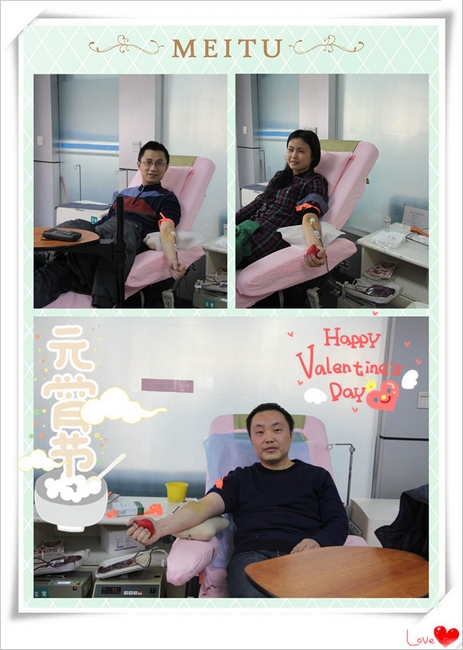 2014年2月14日,我国传统元宵节适逢西方情人节,在这个充满爱意的日子里,很多人以献血献爱心的方式来庆祝。我中心科教信息科三名职工也相约一起献血救人,度过了一个有意义的双节。三人共计献血1000CC。献血完毕,收到了中心特别为献血者们准备的充满浓浓爱意的礼物:一盒精美的巧克力和一袋元宵粉。