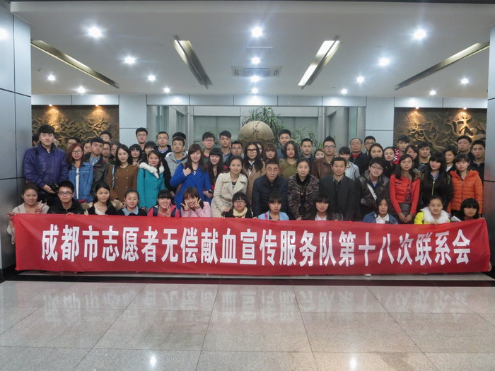 2014年3月22日上午9:30,成都市志愿者无偿献血宣传服务队第十八次联系会在血液中心会议室召开。参加此次会议的有成都市血液中心法人代表傅雪梅、主任助理高加良,成都市志愿者无偿献血宣传服务队总队长冯瑾、志愿者联系会主席李宏,以及“九九温馨”、“西区之心”、“十里阳光”、“川大人”、“爱心接力”、“城市之心”、“蓉城义工”、“成分献血服务队”等支队近200名来自高校、社会献血志愿者宣传服务分队队长。