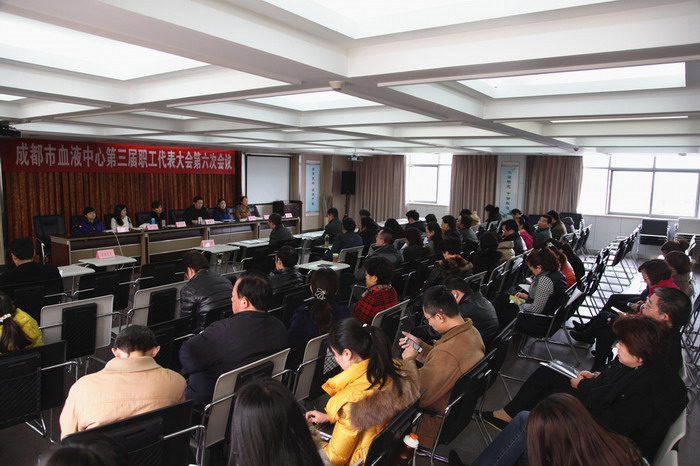 2015年3月3日上午,中心在六楼大会议室召开了第三届职工代表大会第六次会议。会议由中心党委书记杨群身主持。大会应到职工代表40人,实到职工代表39人,22名中层干部和党支部书记列席会议。由工会委员会提名、并经全体职工代表通过,成立了由党政领导、中层干部、工会委员及职工代表7人组成的大会主席团。