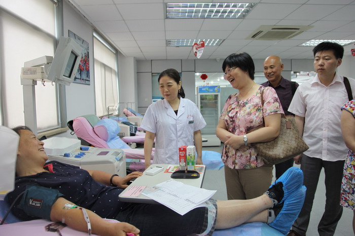 督导组首先听取了我中心主要负责人傅雪梅就近年来中心认真贯彻落实《献血法》情况的汇报,并就《献血法》执行中遇见的问题、无偿献血工作面临的困难与中心工作人员进行了座谈。随后,督查组查阅了相关资料,对血液筛查实验室、机采室等科室进行现场督查,并与在场的无偿献血者和献血服务志愿者进行交流。督查过程中,督导组领导和专家对中心贯彻落实《献血法》的各项工作给予了高度评价,认为中心严格执行相关法律法规,无偿献血成效显著,同时也提出继续改进工作的建议。