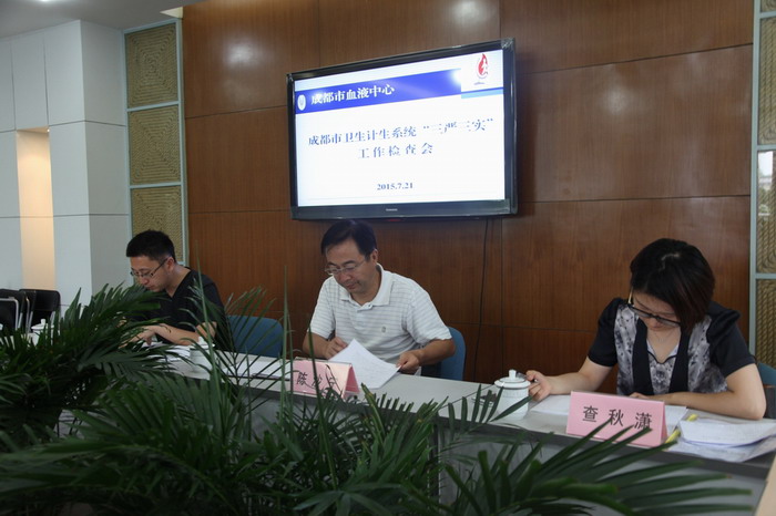 7月21日下午,市委“三严三实”巡察四组在市卫计委党组成员、副主任陈沙宁带领下,由市卫计委工作人员查秋潇、石磊陪同,对成都市血液中心“三严三实”专题教育工作进行了检查,中心领导班子成员及各支部书记共计12人参加了本次检查工作会。
