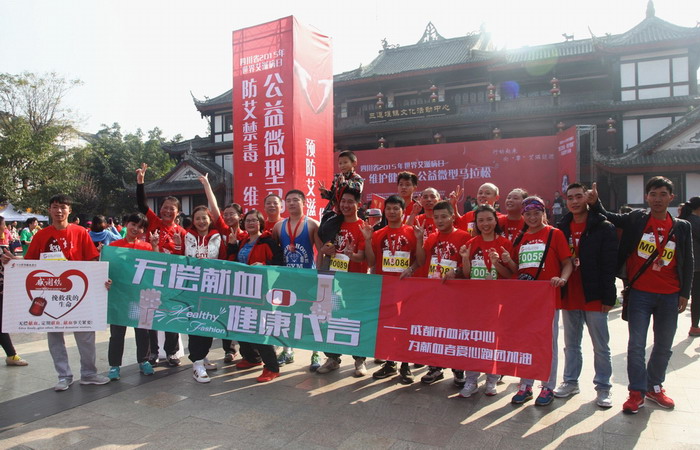 11月29日上午9点45分,由四川省卫生计生委与省公安厅联合主办的四川省首届 "防艾禁毒•维护健康"微型马拉松公益赛鸣枪开跑。来自社会各界的上千名跑友从郫县三道堰镇水文化广场出发,为倡导健康生活方式向着10公里的目标奔跑。成都市无偿献血者和志愿者组建的30人“特别爱心跑团”参加了本次比赛,让公益与生命关爱“叠加”在一起。