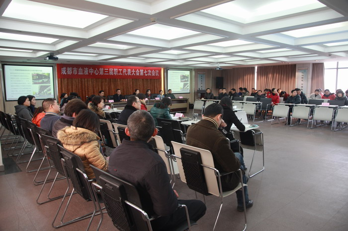 2016年2月2日,成都市血液中心在六楼大会议室召开了第三届职工代表大会第七次会议。会议由中心工会副主席陈炜僖主持。大会应到职工代表39人,实到职工代表35人,20名中层干部和党支部书记列席会议。由工会委员会提名,并经全体职工代表通过,成立了由党政领导、中层干部、工会委员及职工代表7人组成的大会主席团。