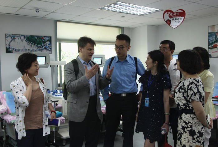 高加良副主任首先向来访的专家简要介绍了我中心的基本情况,Dr.Ziggy针对美国的血液管理、血液招募、血液保存等进行了介绍。随后中心相关工作人员就机采献血者的招募、Rh(D)阴性血液的采集和应急招募、经血传播疾病研究、血液管理等方面工作以提问的方式和Dr.Ziggy进行了探讨和交流。最后,Dr.Ziggy一行参观了献血招募、血小板采集和制备等科室。