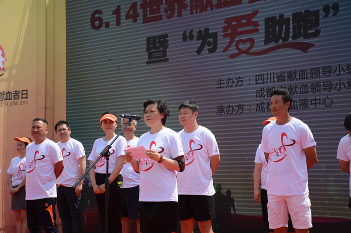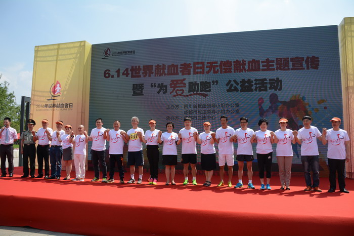 在2016年世界献血者日到来之际,为感谢广大献血者的无私奉献,弘扬救死扶伤的人道主义精神,激发广大人民群众参与无偿献血的热情,同时有机结合全民健身与健康献血、快乐献血的理念,6月12日下午3点,由四川省献血领导小组办公室、成都市献血领导小组办公室共同主办,成都市血液中心承办的2016年世界献血者日无偿献血主题宣传暨“为爱助跑”公益活动在锦城湖公园顺利举行。