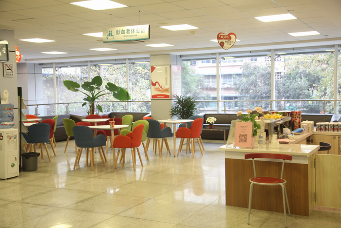 优质的献血服务是调动市民积极参与无偿献血的基础。做好无偿献血服务、提高服务质量,才能让献血者在愉悦、舒适的氛围中完成献血。升级改造后的机采室设施更为完善,献血环境更为温馨舒适。一楼献血大厅集填表登记、献血前检测、体检流程为一体,简化了献血流程,减少了献血者等待检测时间;献血前检测区和体检区从二楼移至一楼大厅,二楼拓宽后的献血休息区更加宽敞明亮,献血者能在温馨舒适的献血环境中放松休息。