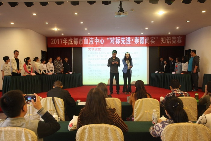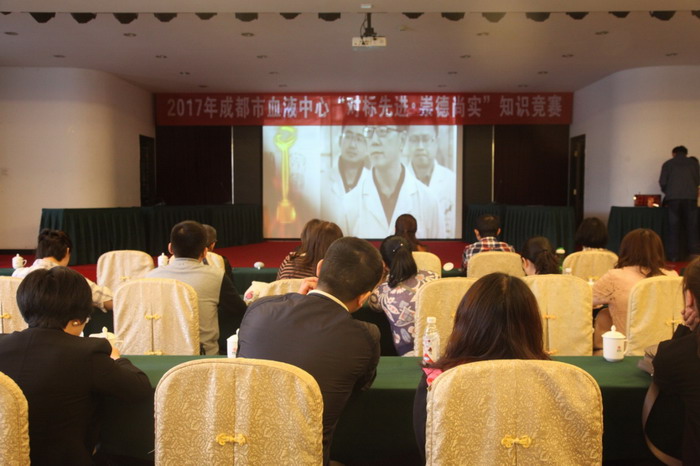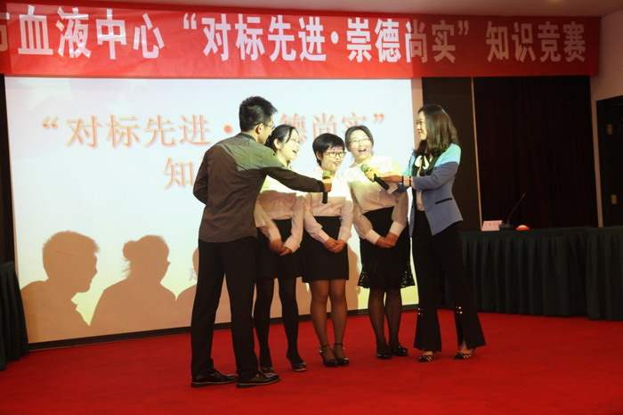 为深入学习梁益建同志先进事迹,巩固和拓展“两学一做”学习教育成果,以普及党规党纪、法律法规,考察采供血业务知识为主线,2017年4月20日上午,中心党委、工会、业务科、办公室、科教信息科、质管管理科和血液管理办公室七个部门联合举办了“对标先进•崇德尚实”知识竞赛,五个参赛队共15名选手参加比赛。中心主任傅雪梅出席并致词,全体班子成员及110余名职工观看了比赛。