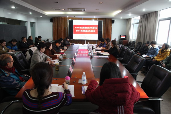 2018年12月27日下午,中心党委在六楼小会议室召开2018年度党支部党建工作年度考核暨中心党委党建工作总结会。会议由中心党委书记米虹主持,中心党委委员、各支部书记、支部委员、党员代表、民主党派代表以及群众代表参会。