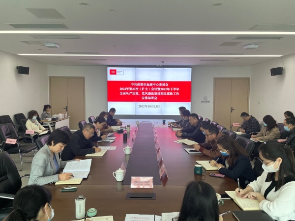 10月13日,成都市血液中心召开2022年下半年全面从严治党、党风廉政建设和反腐败工作安排部署会。领导班子全体成员、各科室负责人、党支部书记、工会及团总支负责人参加此次会议。